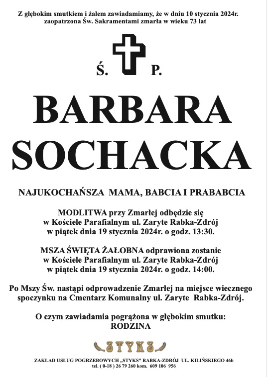 Barbara Sochacka - Nekrologi - podhale24.pl