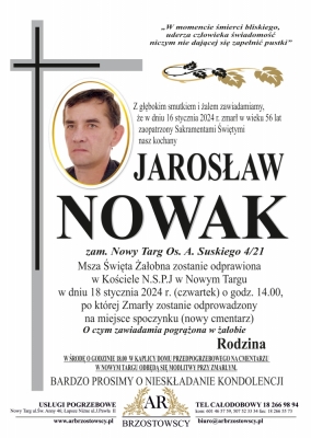 Podhale24.pl zastrzega sobie prawo do nie publikowania wspomnień, w szczególności tych nie związanych z profilem działu nekrologi, zawierających wulgaryzmy, wzywających do zachowań niezgodnych z prawem, obrażających osoby publiczne i prywatne, obrażających inne narodowości, rasy, religie itd, oraz te, bez możliwości telefonicznej lub mailowej weryfikacji ich autora.
