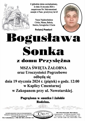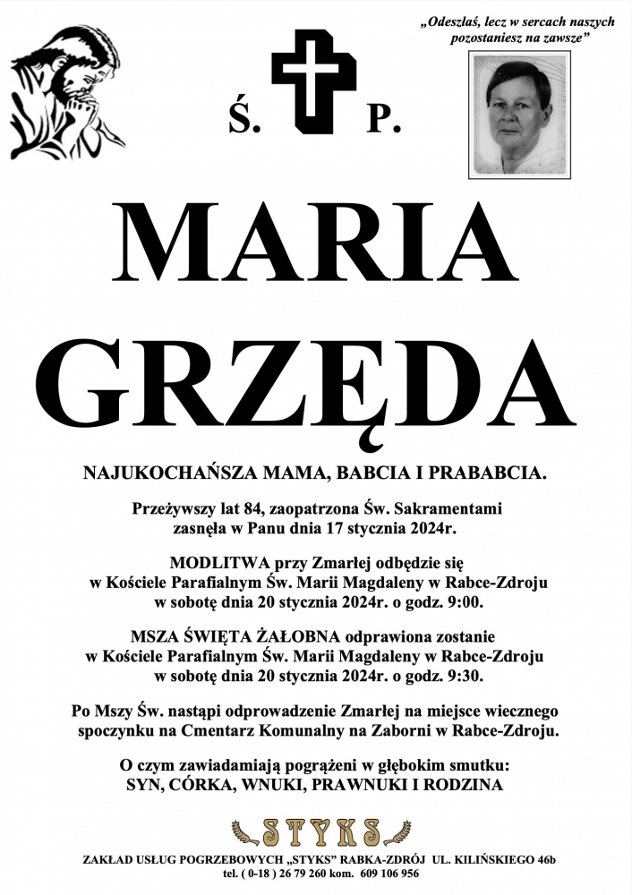 Podhale24.pl zastrzega sobie prawo do nie publikowania wspomnień, w szczególności tych nie związanych z profilem działu nekrologi, zawierających wulgaryzmy, wzywających do zachowań niezgodnych z prawem, obrażających osoby publiczne i prywatne, obrażających inne narodowości, rasy, religie itd, oraz te, bez możliwości telefonicznej lub mailowej weryfikacji ich autora.