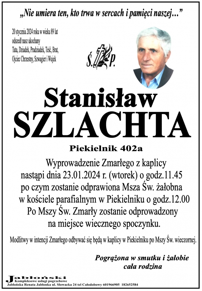 Stanisław Szlachta - Nekrologi - podhale24.pl
