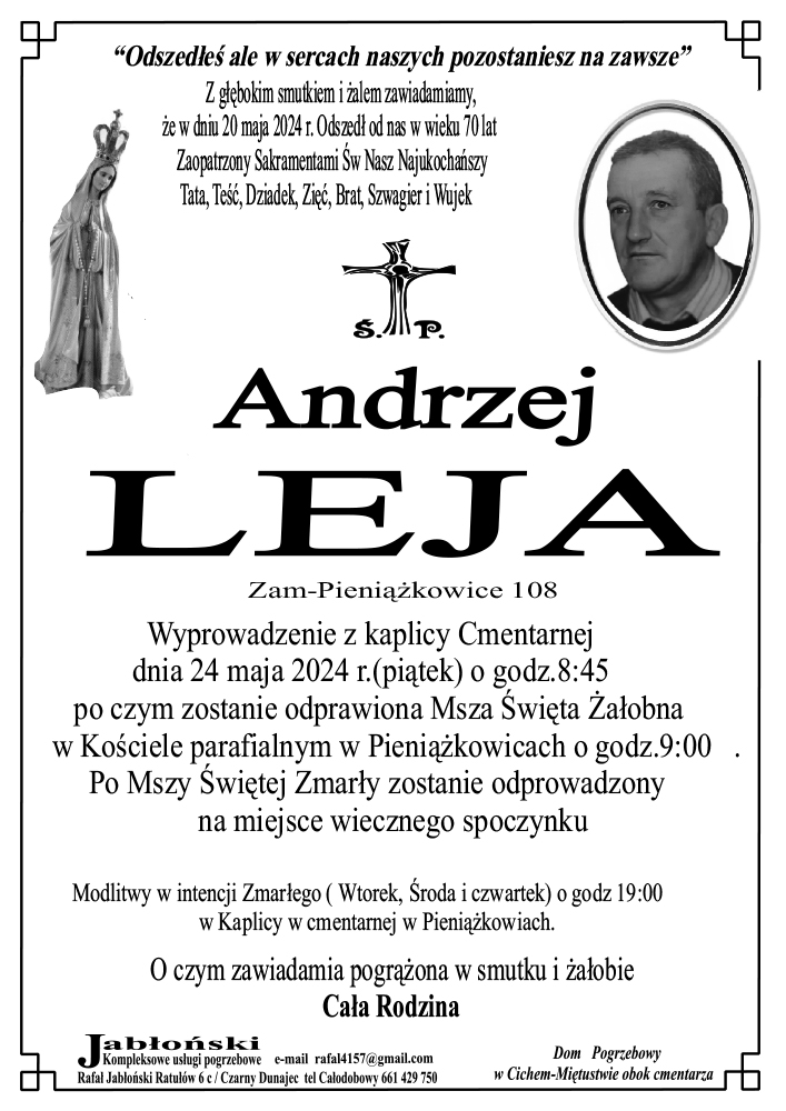 Podhale24.pl zastrzega sobie prawo do nie publikowania wspomnień, w szczególności tych nie związanych z profilem działu nekrologi, zawierających wulgaryzmy, wzywających do zachowań niezgodnych z prawem, obrażających osoby publiczne i prywatne, obrażających inne narodowości, rasy, religie itd, oraz te, bez możliwości telefonicznej lub mailowej weryfikacji ich autora.