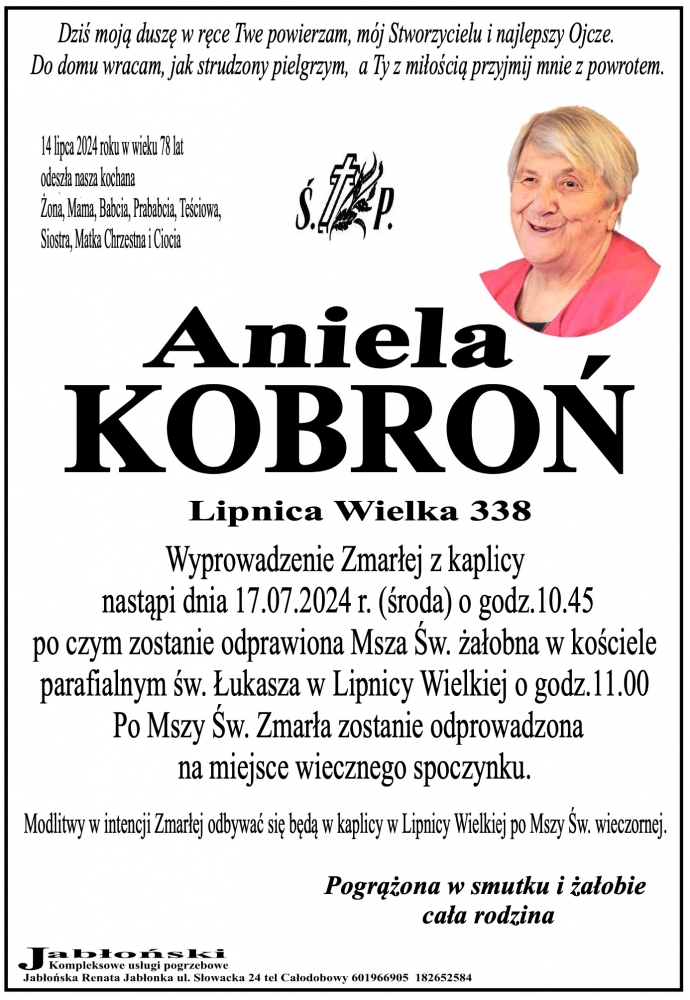 Aniela Kobroń - Nekrologi - podhale24.pl