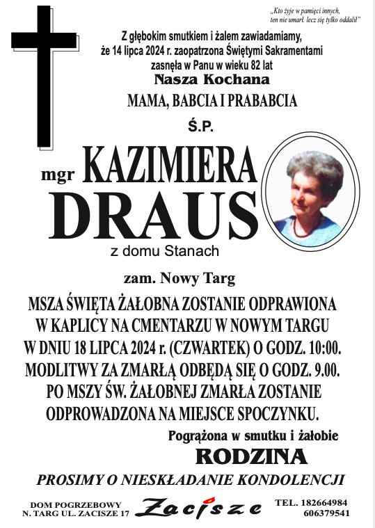 Kazimiera Draus - Nekrologi - podhale24.pl