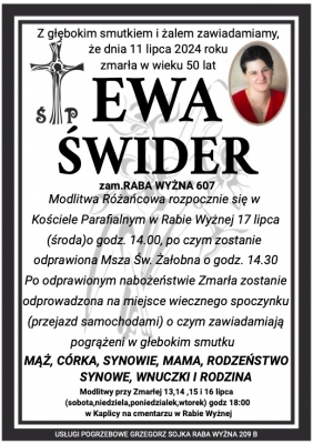 Podhale24.pl zastrzega sobie prawo do nie publikowania wspomnień, w szczególności tych nie związanych z profilem działu nekrologi, zawierających wulgaryzmy, wzywających do zachowań niezgodnych z prawem, obrażających osoby publiczne i prywatne, obrażających inne narodowości, rasy, religie itd, oraz te, bez możliwości telefonicznej lub mailowej weryfikacji ich autora.