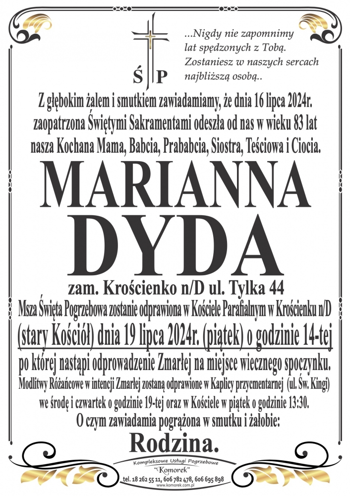 Podhale24.pl zastrzega sobie prawo do nie publikowania wspomnień, w szczególności tych nie związanych z profilem działu nekrologi, zawierających wulgaryzmy, wzywających do zachowań niezgodnych z prawem, obrażających osoby publiczne i prywatne, obrażających inne narodowości, rasy, religie itd, oraz te, bez możliwości telefonicznej lub mailowej weryfikacji ich autora.