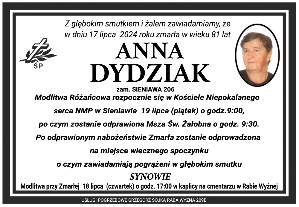 Anna Dydziak - Nekrologi - podhale24.pl
