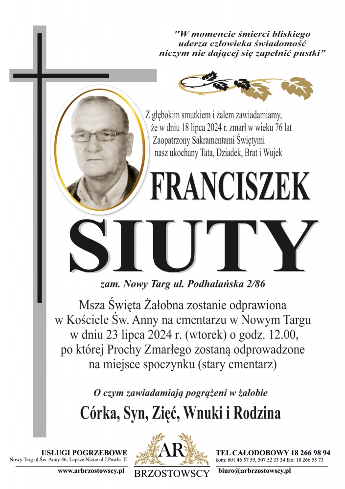 Franciszek Siuty - Nekrologi - podhale24.pl