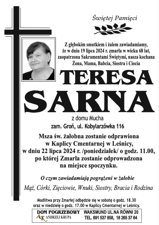 Teresa Sarna - Nekrologi - podhale24.pl