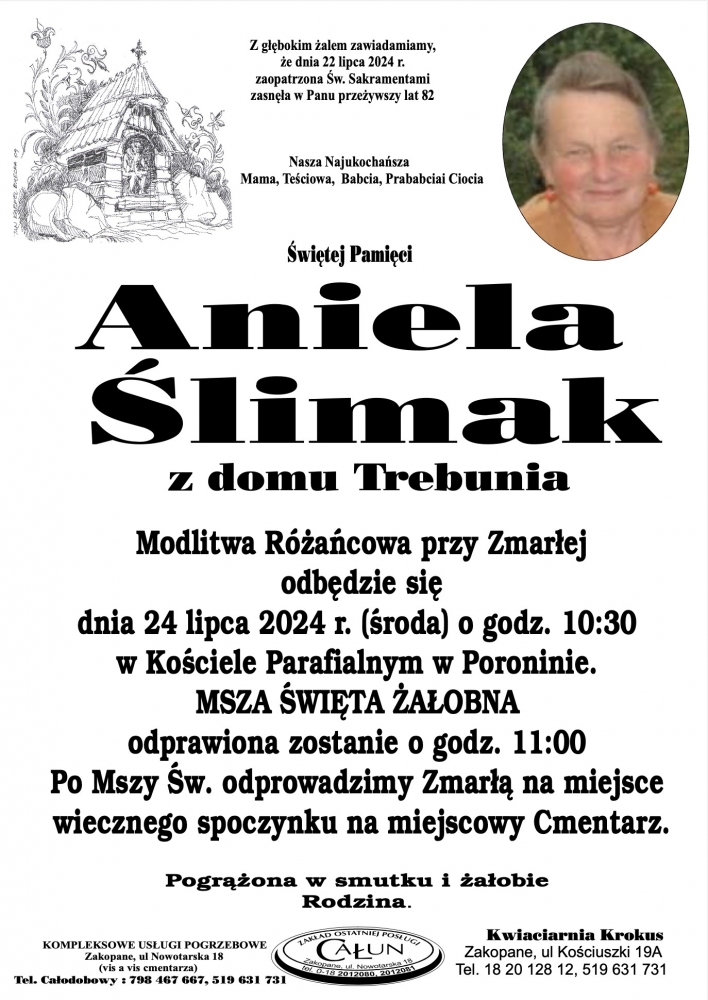 Aniela Ślimak - Nekrologi - podhale24.pl