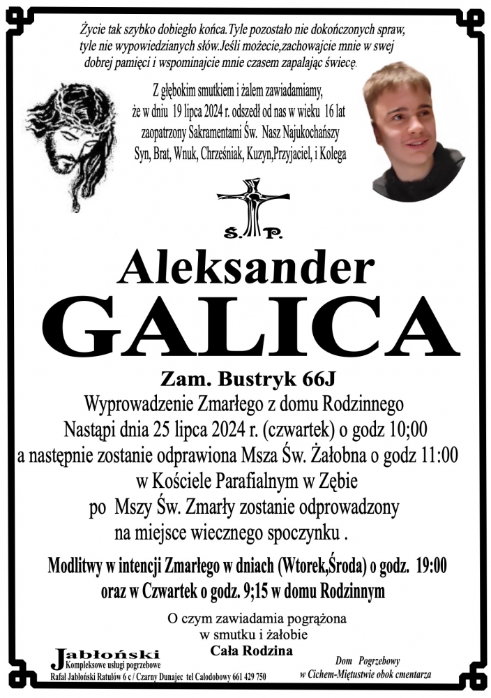 Podhale24.pl zastrzega sobie prawo do nie publikowania wspomnień, w szczególności tych nie związanych z profilem działu nekrologi, zawierających wulgaryzmy, wzywających do zachowań niezgodnych z prawem, obrażających osoby publiczne i prywatne, obrażających inne narodowości, rasy, religie itd, oraz te, bez możliwości telefonicznej lub mailowej weryfikacji ich autora.