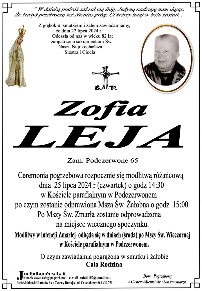 Podhale24.pl zastrzega sobie prawo do nie publikowania wspomnień, w szczególności tych nie związanych z profilem działu nekrologi, zawierających wulgaryzmy, wzywających do zachowań niezgodnych z prawem, obrażających osoby publiczne i prywatne, obrażających inne narodowości, rasy, religie itd, oraz te, bez możliwości telefonicznej lub mailowej weryfikacji ich autora.