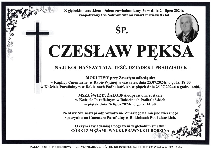 Czesław Pęksa - Nekrologi - podhale24.pl