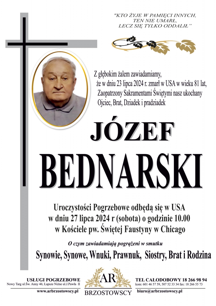Józef Bednarski - Nekrologi - podhale24.pl