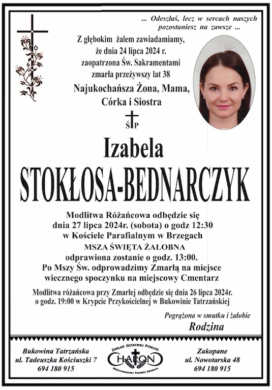 Izabela Stokłosa-Bednarczyk - Nekrologi - podhale24.pl