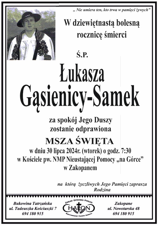 Łukasz Gąsienica-Samek - Nekrologi - podhale24.pl