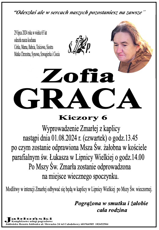 Zofia Graca - Nekrologi - podhale24.pl