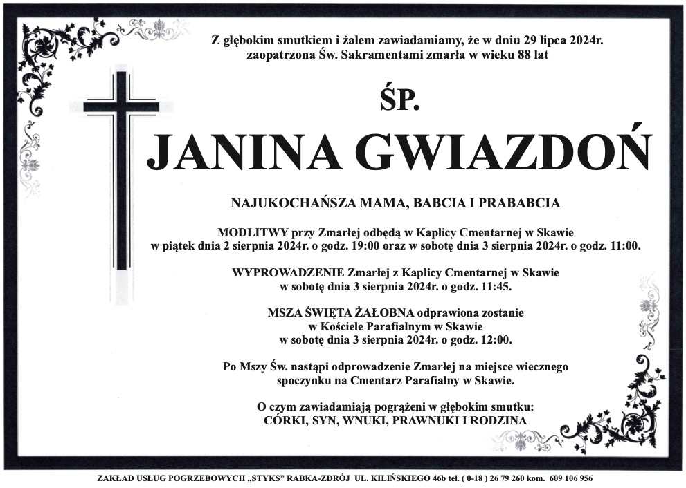 Janina Gwizdoń - Nekrologi - podhale24.pl