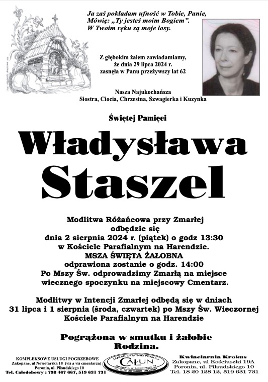 Wladysława Staszel - Nekrologi - podhale24.pl