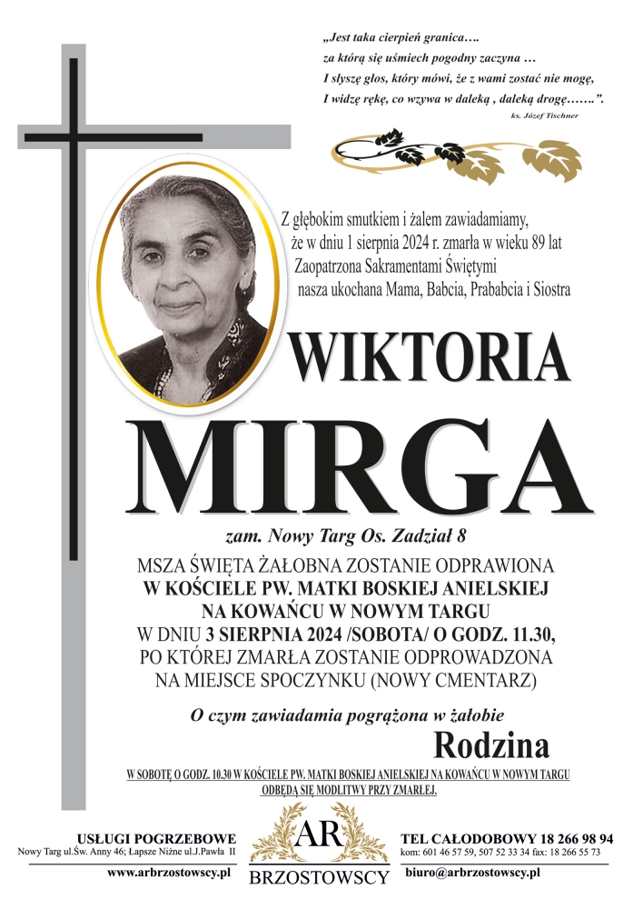 Wiktoria Mirga - Nekrologi - podhale24.pl