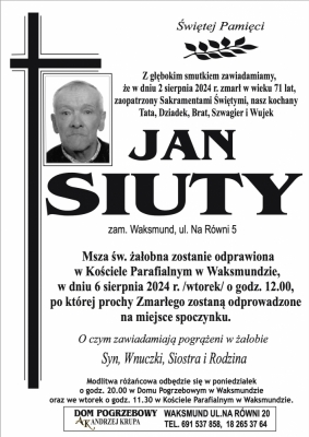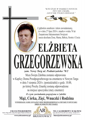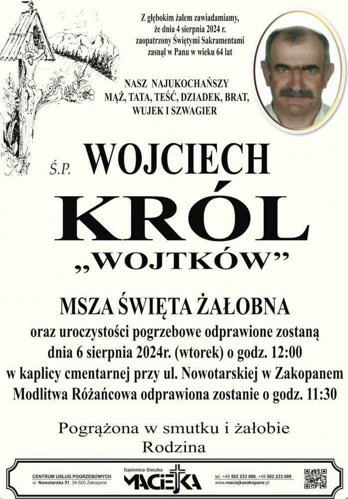 Podhale24.pl zastrzega sobie prawo do nie publikowania wspomnień, w szczególności tych nie związanych z profilem działu nekrologi, zawierających wulgaryzmy, wzywających do zachowań niezgodnych z prawem, obrażających osoby publiczne i prywatne, obrażających inne narodowości, rasy, religie itd, oraz te, bez możliwości telefonicznej lub mailowej weryfikacji ich autora.