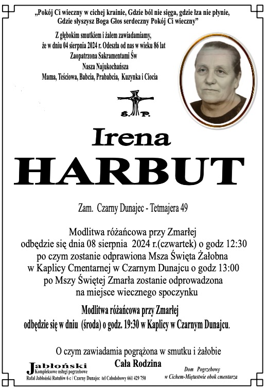Irena Harbut - Nekrologi - podhale24.pl