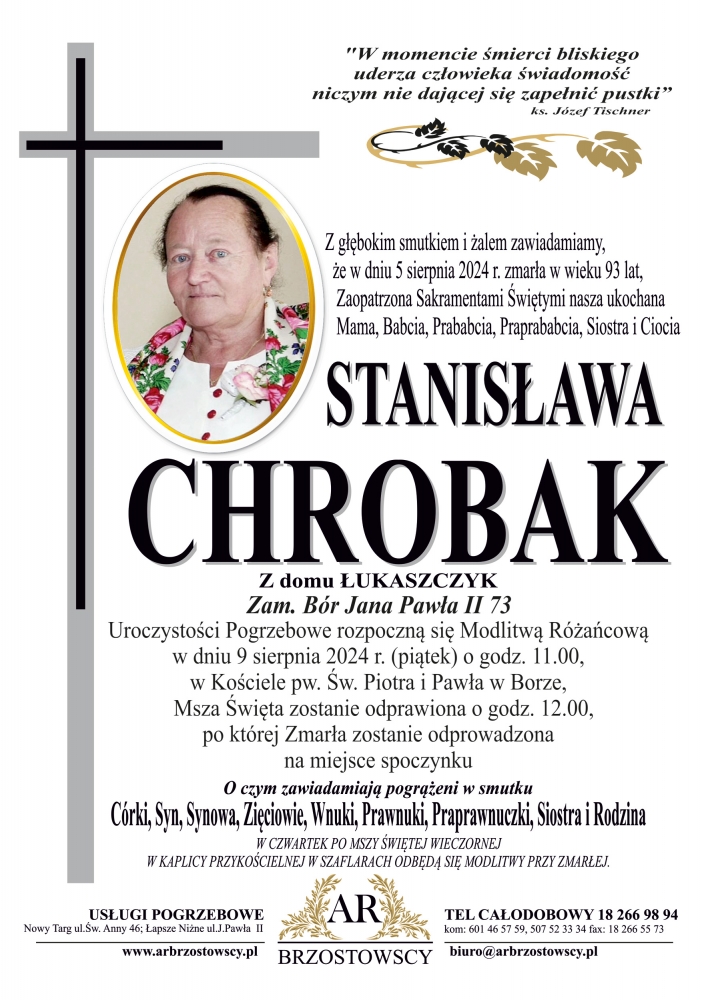 Stanisława Chrobak - Nekrologi - podhale24.pl