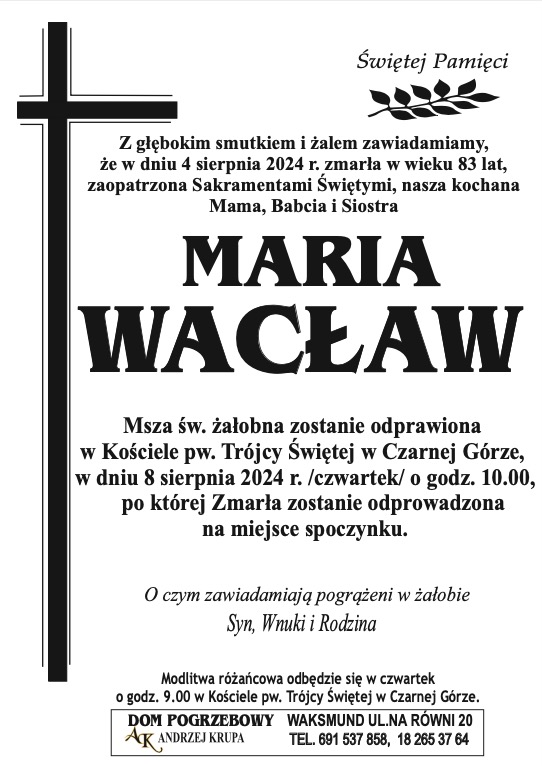 Maria Wacław - Nekrologi - podhale24.pl