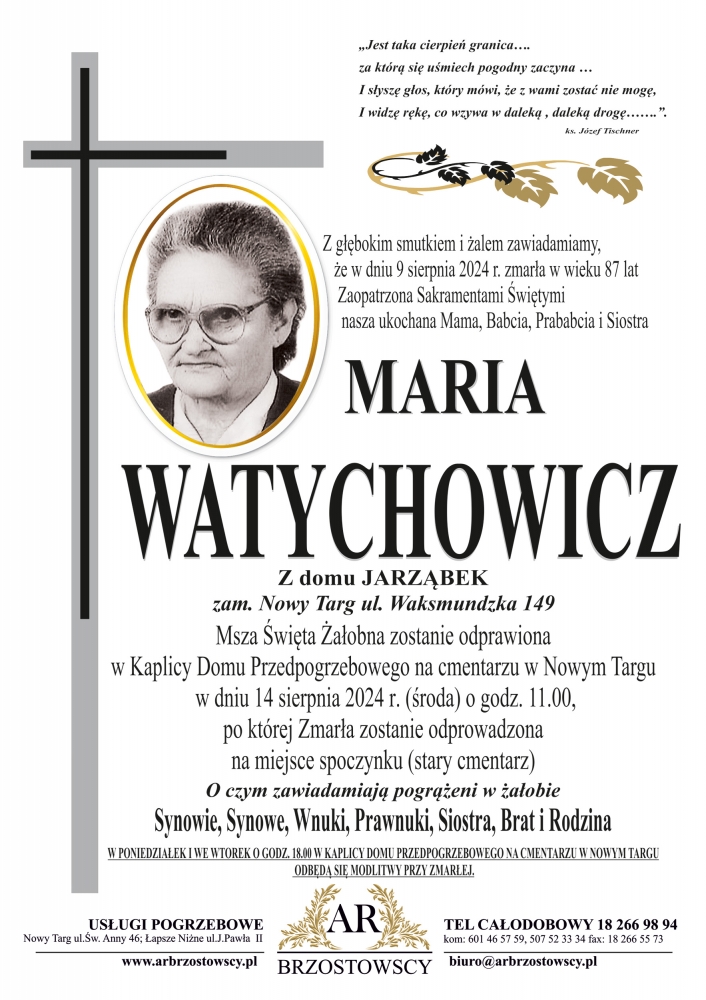 Maria Watychowicz - Nekrologi - podhale24.pl
