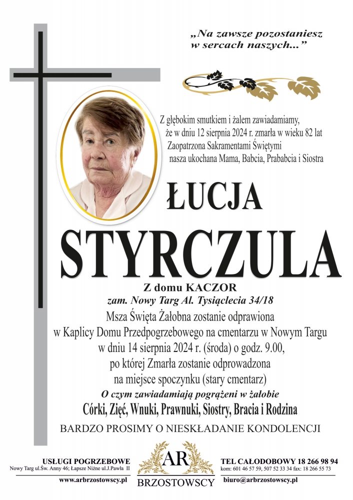 Łucja Styrczula - Nekrologi - podhale24.pl
