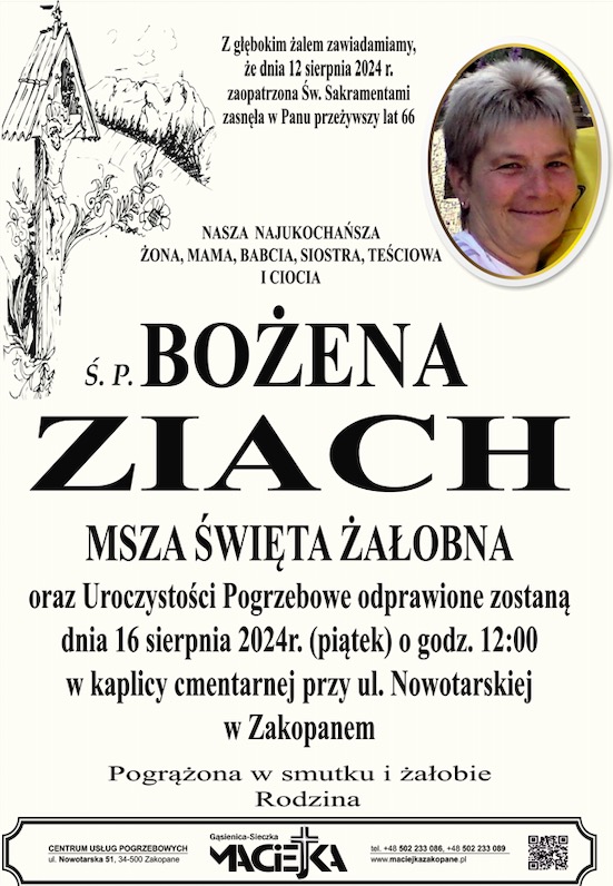 Bożena Ziach - Nekrologi - podhale24.pl