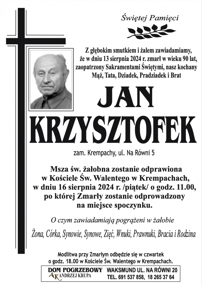 Jan Krzysztofek - Nekrologi - podhale24.pl