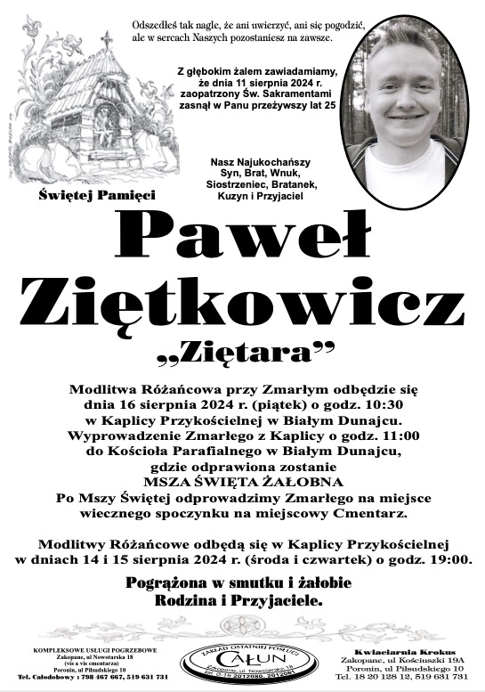 Paweł Ziętkowicz - Nekrologi - podhale24.pl