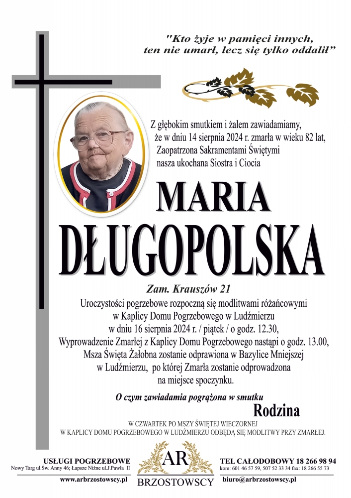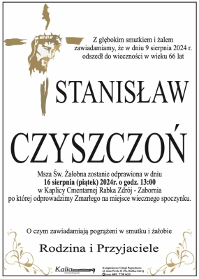 Podhale24.pl zastrzega sobie prawo do nie publikowania wspomnień, w szczególności tych nie związanych z profilem działu nekrologi, zawierających wulgaryzmy, wzywających do zachowań niezgodnych z prawem, obrażających osoby publiczne i prywatne, obrażających inne narodowości, rasy, religie itd, oraz te, bez możliwości telefonicznej lub mailowej weryfikacji ich autora.