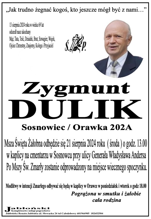 Zygmunt Dulik - Nekrologi - podhale24.pl