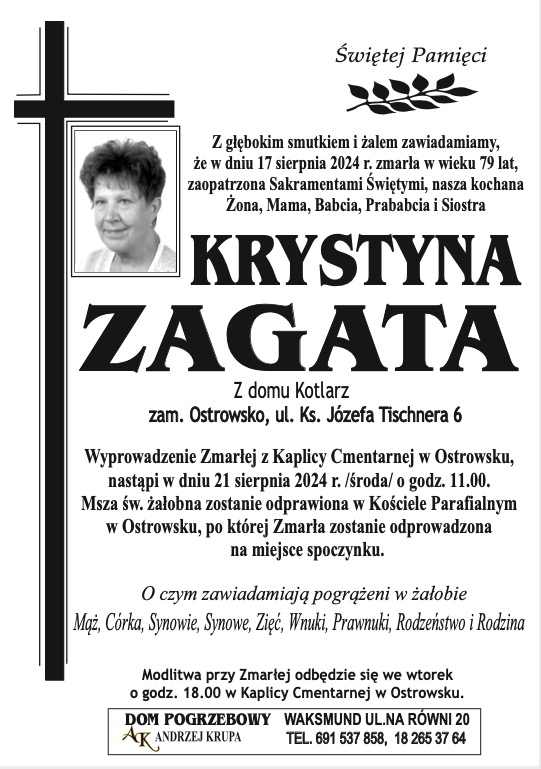 Krystyna Zagata - Nekrologi - podhale24.pl