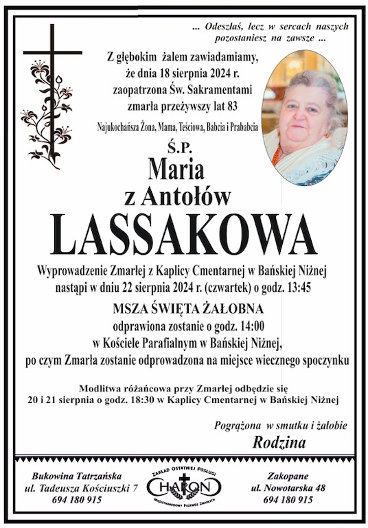 Maria Lassakowa - Nekrologi - podhale24.pl