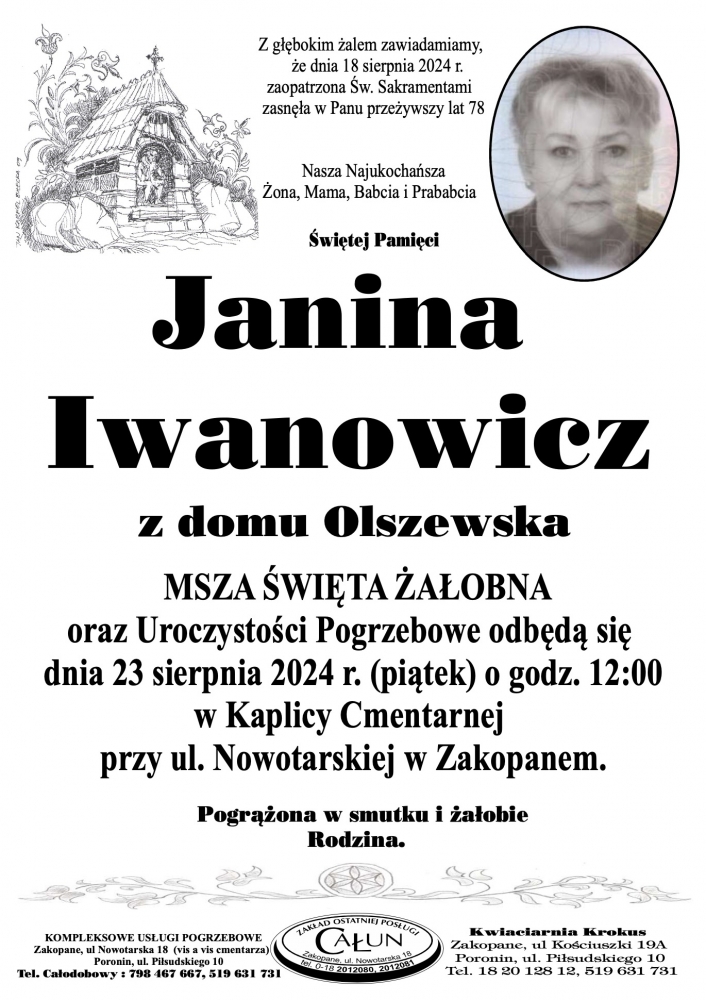 Janina Iwanowicz - Nekrologi - podhale24.pl