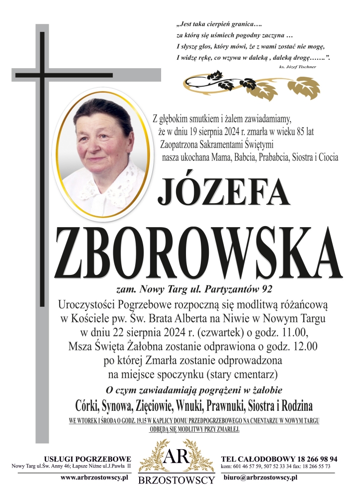 Józefa Zborowska - Nekrologi - podhale24.pl