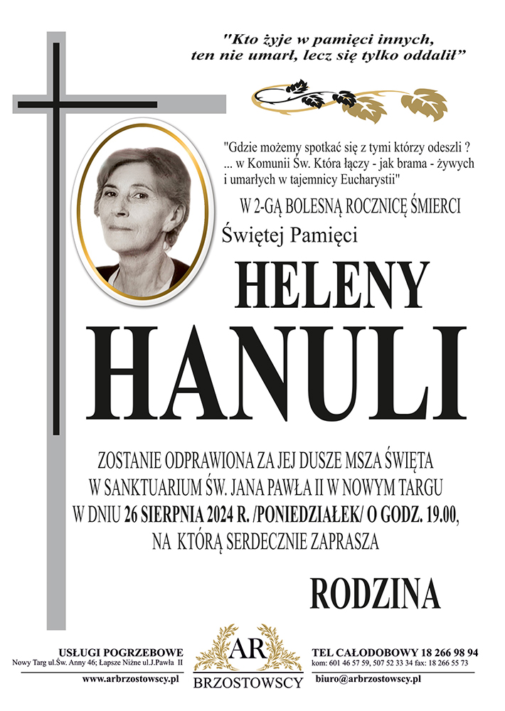 Helena Hanula - Nekrologi - podhale24.pl