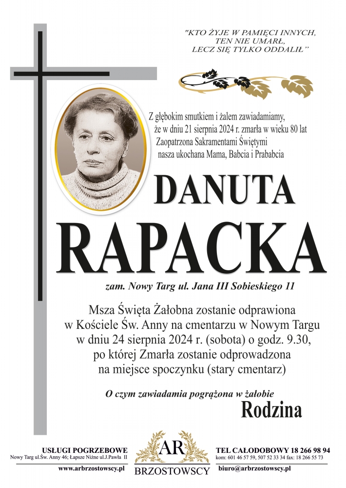 Danuta Rapacka - Nekrologi - podhale24.pl
