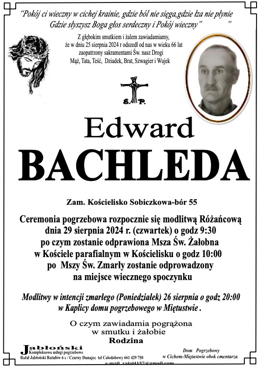 Podhale24.pl zastrzega sobie prawo do nie publikowania wspomnień, w szczególności tych nie związanych z profilem działu nekrologi, zawierających wulgaryzmy, wzywających do zachowań niezgodnych z prawem, obrażających osoby publiczne i prywatne, obrażających inne narodowości, rasy, religie itd, oraz te, bez możliwości telefonicznej lub mailowej weryfikacji ich autora.