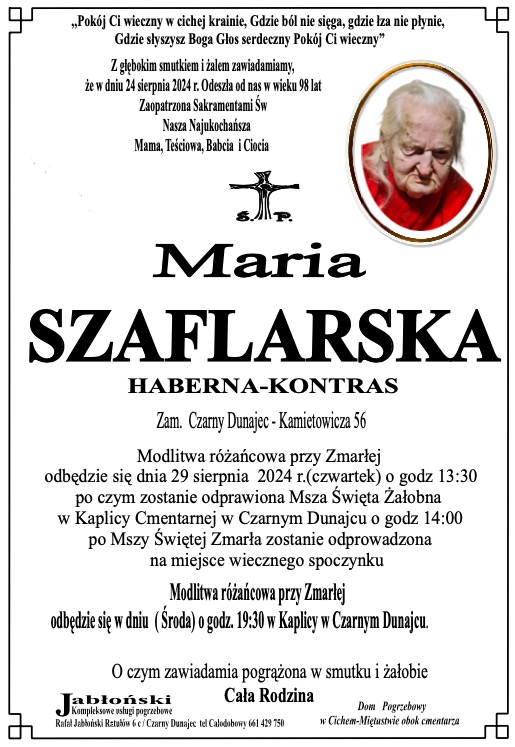 Maria Szaflarska - Nekrologi - podhale24.pl