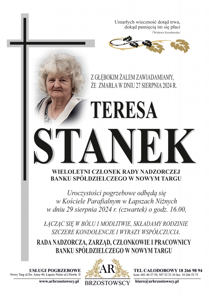 Podhale24.pl zastrzega sobie prawo do nie publikowania wspomnień, w szczególności tych nie związanych z profilem działu nekrologi, zawierających wulgaryzmy, wzywających do zachowań niezgodnych z prawem, obrażających osoby publiczne i prywatne, obrażających inne narodowości, rasy, religie itd, oraz te, bez możliwości telefonicznej lub mailowej weryfikacji ich autora.