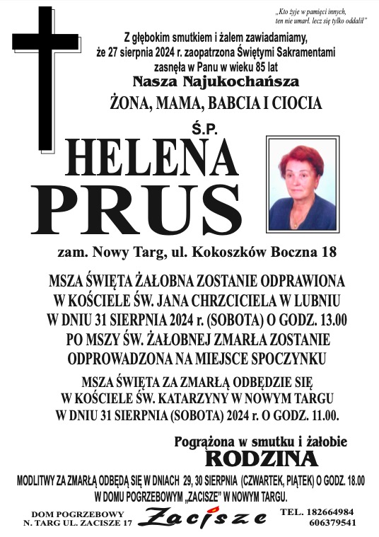 Podhale24.pl zastrzega sobie prawo do nie publikowania wspomnień, w szczególności tych nie związanych z profilem działu nekrologi, zawierających wulgaryzmy, wzywających do zachowań niezgodnych z prawem, obrażających osoby publiczne i prywatne, obrażających inne narodowości, rasy, religie itd, oraz te, bez możliwości telefonicznej lub mailowej weryfikacji ich autora.