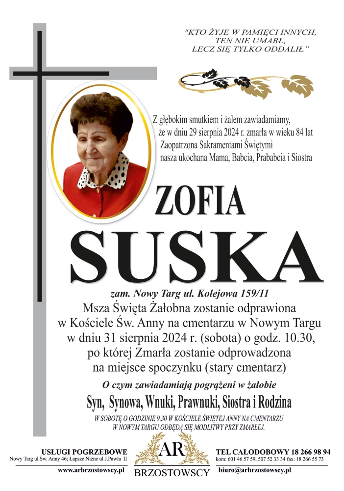 Zofia Suska - Nekrologi - podhale24.pl