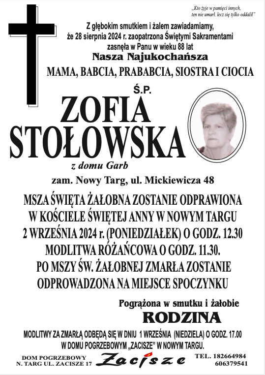 Zofia Stołowska - Nekrologi - podhale24.pl