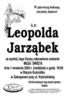 Podhale24.pl zastrzega sobie prawo do nie publikowania wspomnień, w szczególności tych nie związanych z profilem działu nekrologi, zawierających wulgaryzmy, wzywających do zachowań niezgodnych z prawem, obrażających osoby publiczne i prywatne, obrażających inne narodowości, rasy, religie itd, oraz te, bez możliwości telefonicznej lub mailowej weryfikacji ich autora.