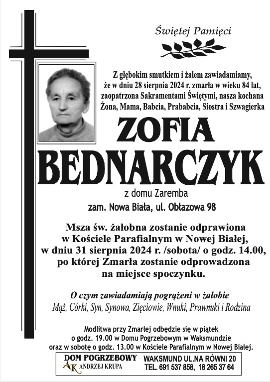 Zofia Bednarczyk - Nekrologi - podhale24.pl