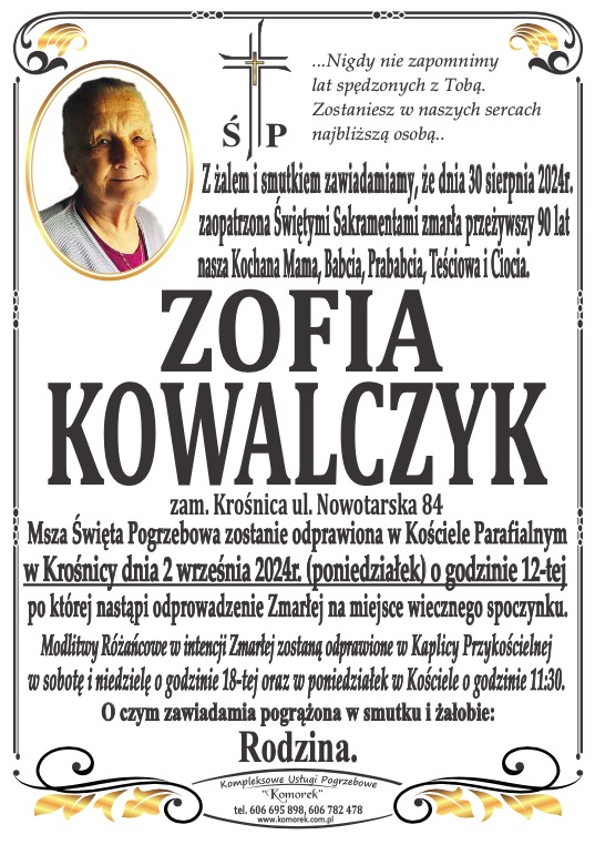 Zofia Kowalczyk - Nekrologi - podhale24.pl