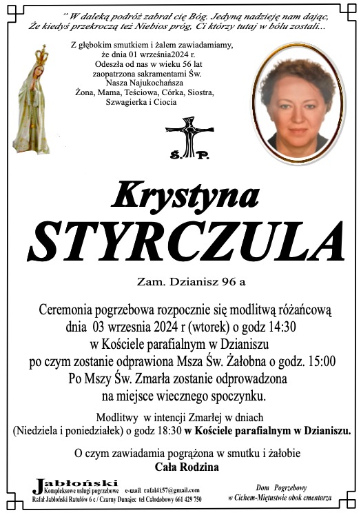 Krystyna Styrczula - Nekrologi - podhale24.pl